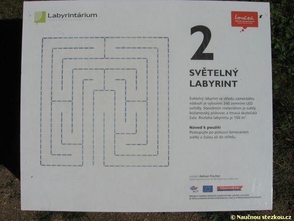 Labyrintárium Loučeň – informační panel u světelného labyrintu, který pojímá více jak 300 zemních světel