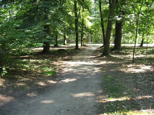 Labyrintárium Loučeň – značení stezek – rovně dendrologická, vlevo labyrintáriem
